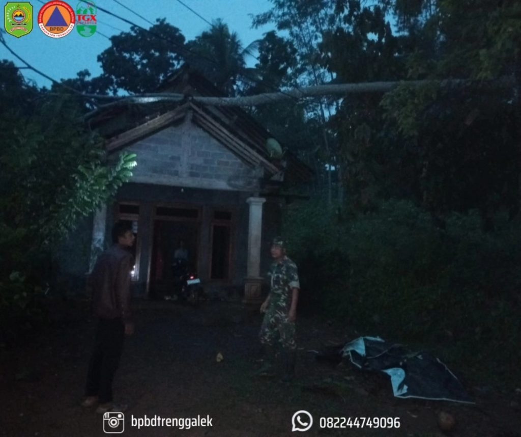 Pada hari Rabu tanggal 1 Oktober 2025 mulai pukul 15.30 hingga pukul 17.30 WIB wilayah Kec Dongko di guyur hujan dengan intensitas sedang – tinggi dgn disertai angin. Sekitar pukul 17.15 WIB terjadi pohon tumbang yg menimpa Kabel listrik PLN dan teras depan dan sebagian ruang tamu rumah Ibu Suyatin RT 65 RW 14 Dsn. Premban Ds. Dongko Kec Dongko.