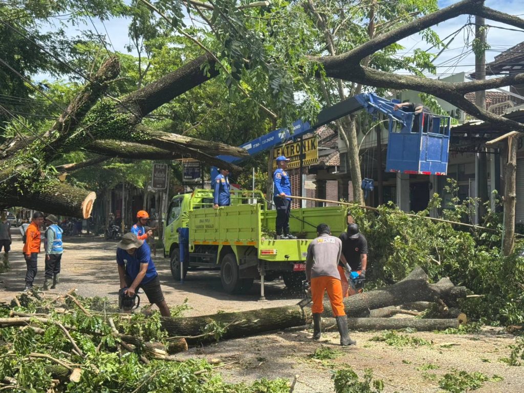 Kamis, 01 Januari 2026 Pukul 16.05 WIB Wilayah Desa Nglebeng Kec. Panggul terjadi hujan deras disertai angin kencang, sehingga pada Jum’at, 2 Januari 2026 Pukul 04.30 WIB pohon Sengon dan pohon Pakel yang berada di tepi jalan Raya Tumbang dan melintang di jalan raya menuju Pantai Konang Desa Nglebeng Kecamatan Panggul, sehingga menyebabkan akses jalan …