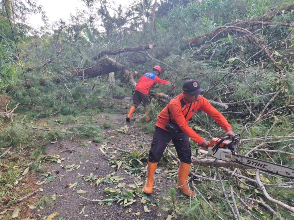 Sabtu, 24 Januari 2026 Telah terjadi angin kencang sehingga mengakibatkan beberapa pohon tumbang antara lain :1. Desa Gondang Kec. Tugu Pohon berjenis jowar tumbang menimoa tiang lampu jalan, kabel telepon dan 1 kendaraan pick up. ( Pkl. 10.00 WIB)2. Desa Pucanganak Km 12 Kec. Tugu pohon berjenis sono patah sehingga melintang di jalan dan menimpa …