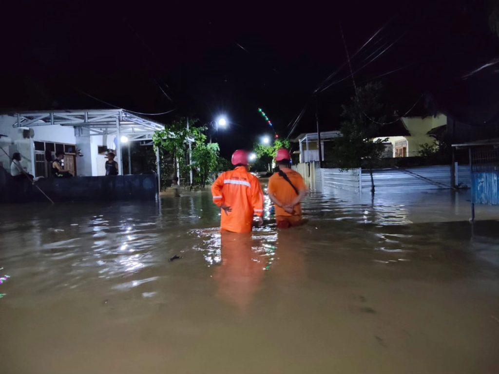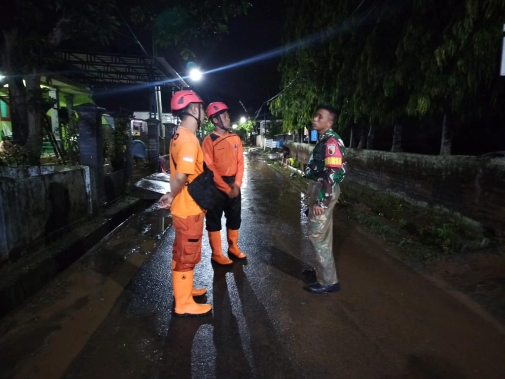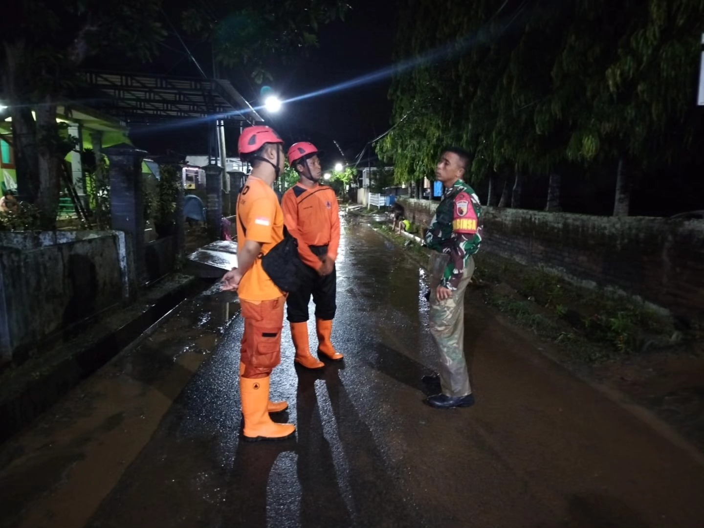 Tim TRC Multisektor, Babinsa, BKTM, dan perangkat desa bersama warga masyarakat melakukan pemantauan dan pendataan. Kondisi terkini pukul 22.30 WIB air sudah surut