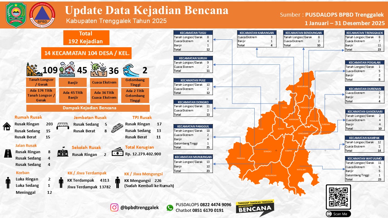 Infografis Rekapitulasi Kejadian Bencana Kab. Trenggalek Tahun 2025 Tinggalkan Komentar / Tak Berkategori / Oleh Admin_BPBD Infografis Rekapitulasi Kejadian Bencana Kab. Trenggalek Tahun 2025