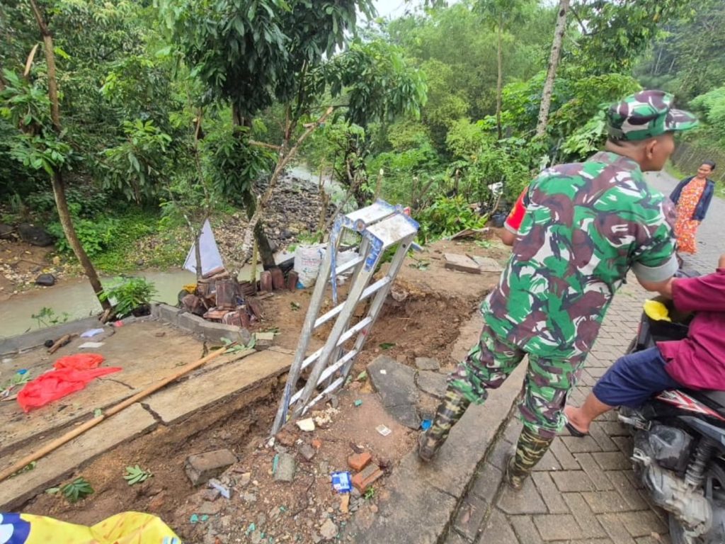 1. TRC Multisektor, Babinsa , BKTM Perangkat Desa, Warga Masyarakat mendatani lokasi kejadian Tanah ambles