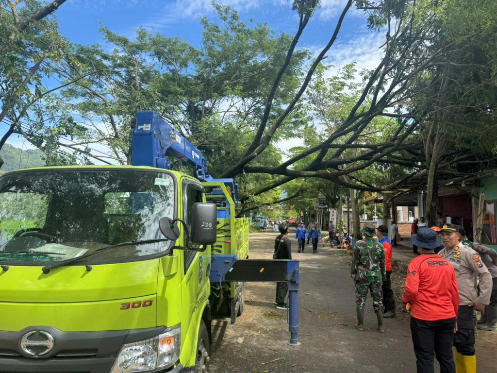 Jum’at, 2 Januari 2026 Kalaksa BPBD Trenggalek meninjau lokasi dampak cuaca ekstrem di Desa Wonocoyo Kecamatan Panggul. Tim bergotong royong bahu membahu untuk melakukan penanganan pohon tumbang.