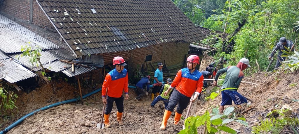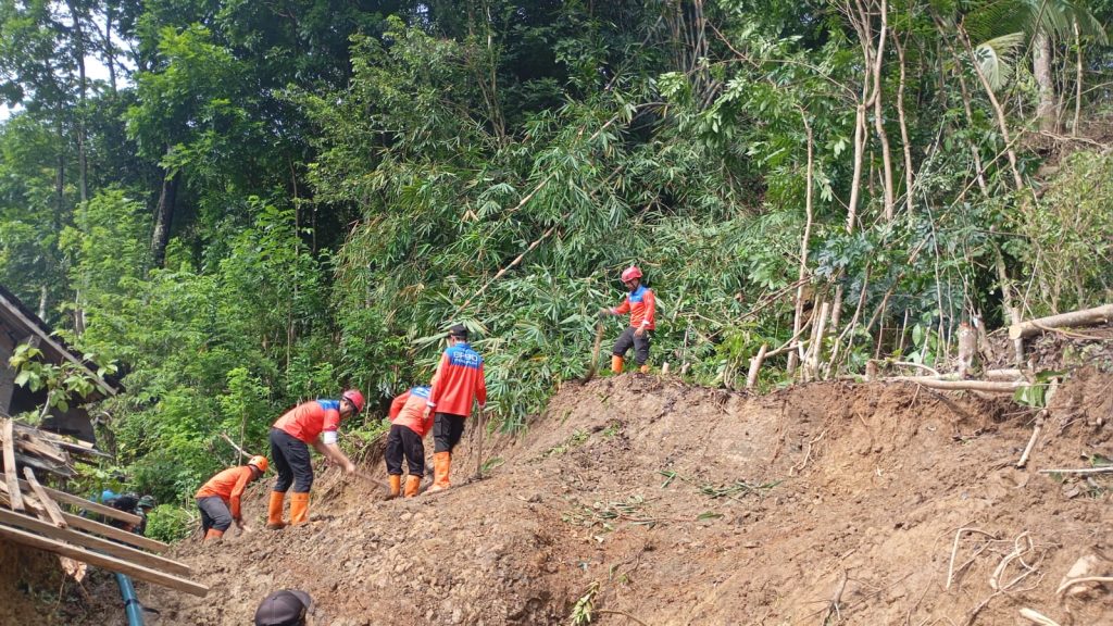 Jumat, 7 Nopember 2025. Pembersihan Material Longsor Trenggalek Pasca Bencana Tanah longsor di Desa Dawuhan Kecamatan Trenggalek