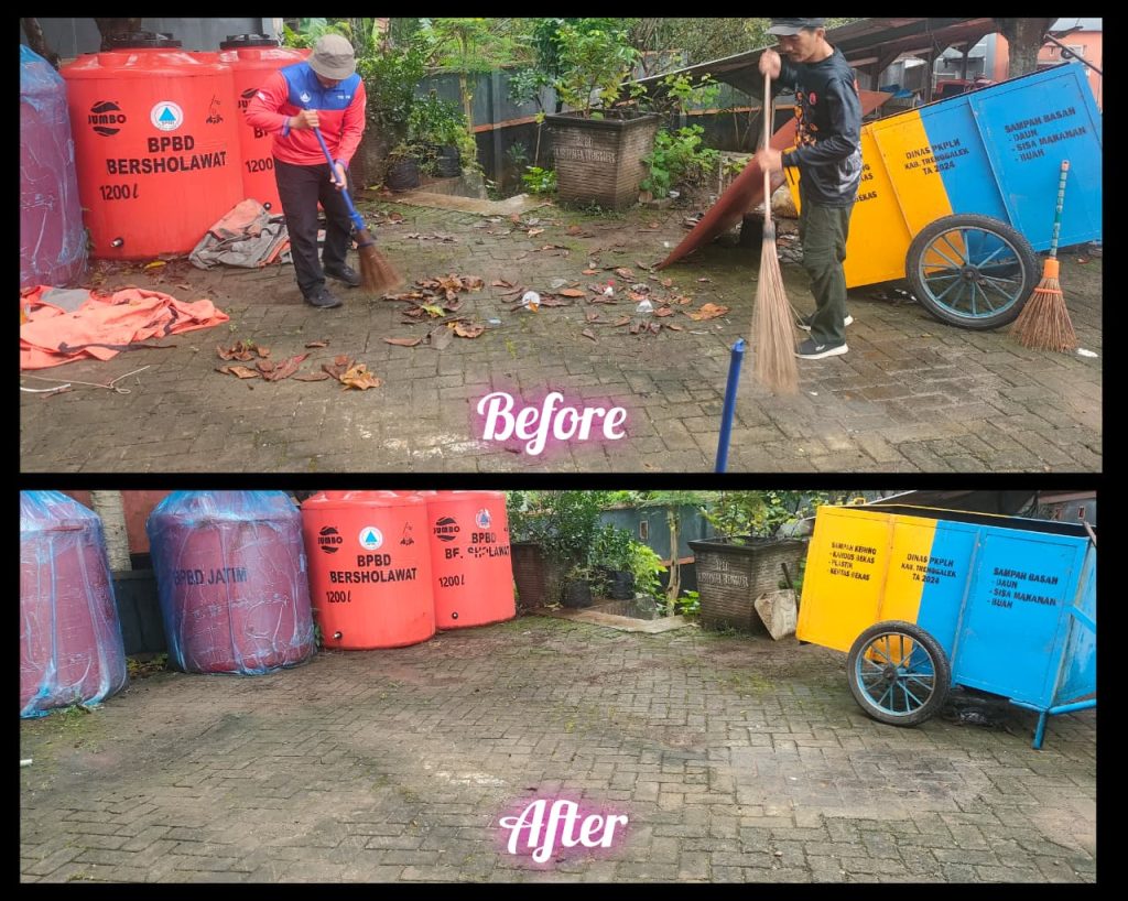 Dalam rangka mewujudkan lingkungan kerja yang bersih, rapi, dan nyaman, personel BPBD Kabupaten Trenggalek melaksanakan kegiatan Jum’at Berseri (Bersih, Sehat, Rapi dan Indah) pada hari Jum’at, 13 Februari 2026 di lingkup kantor BPBD Trenggalek.