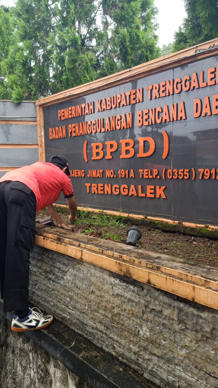Dalam rangka mewujudkan lingkungan kerja yang bersih, rapi, dan nyaman, personel BPBD Kabupaten Trenggalek melaksanakan kegiatan Jum’at Berseri (Bersih, Sehat, Rapi dan Indah) pada hari Jum’at, 13 Februari 2026 di lingkup kantor BPBD Trenggalek.