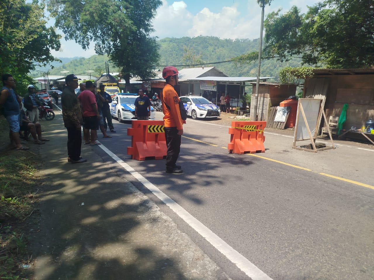 TRC-PB BPBD, POLRI, TNI, Perangkat Desa bersama masyarakat meninjau lokasi kejadian dan menutup jalur.