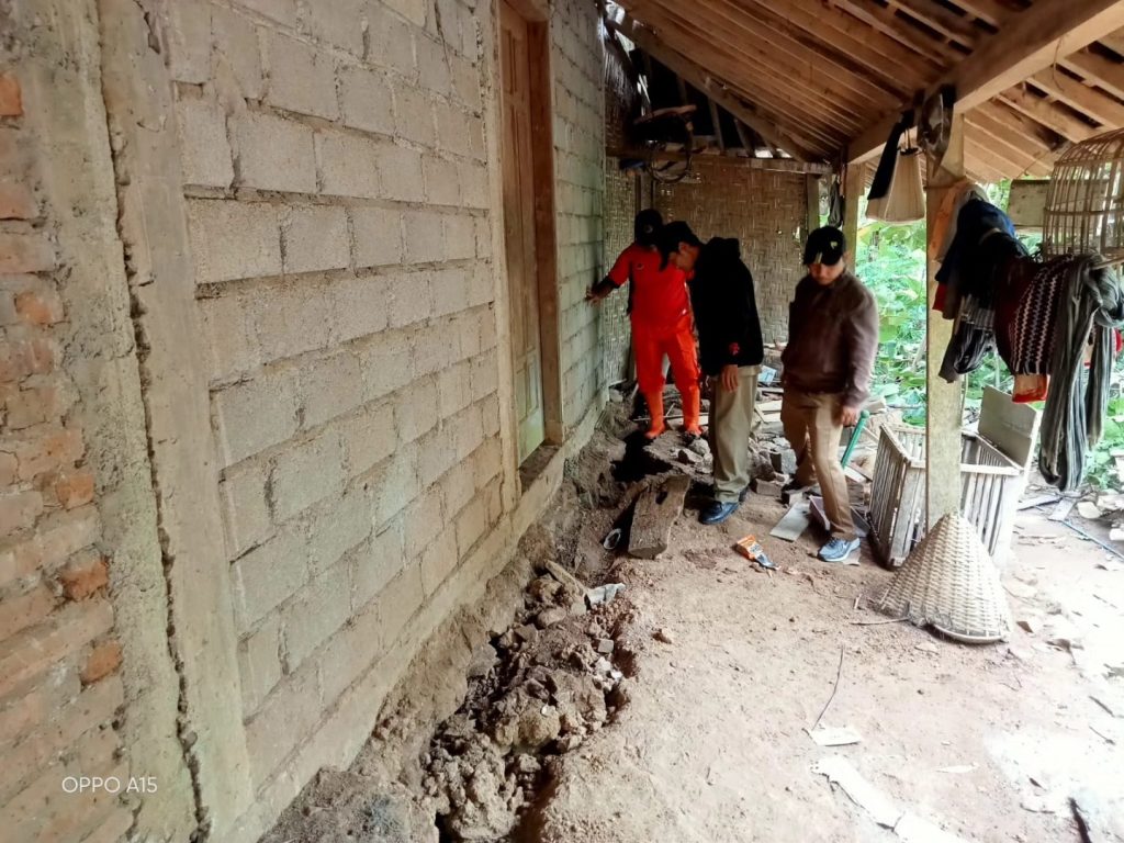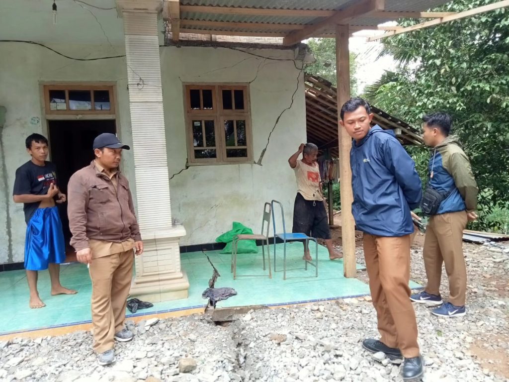 Minggu, 16 November 2025 mulai Pukul 14.30 WIB di Wilayah Kec. Pule diguyur hujan dengan intensitas Sedang. Dan pada hari Senin, 17 November 2025 Pukul 05.00 WIB rumah milik Sdr. Bari RT. 03 RW. 01 Ds. Jombok Kec. Pule mengalami tanah gerak, akibat dari kejadian tersebut rumah Sdr. Bani retak – retak dengan lebar 30cm dan kedalaman 50 cm.