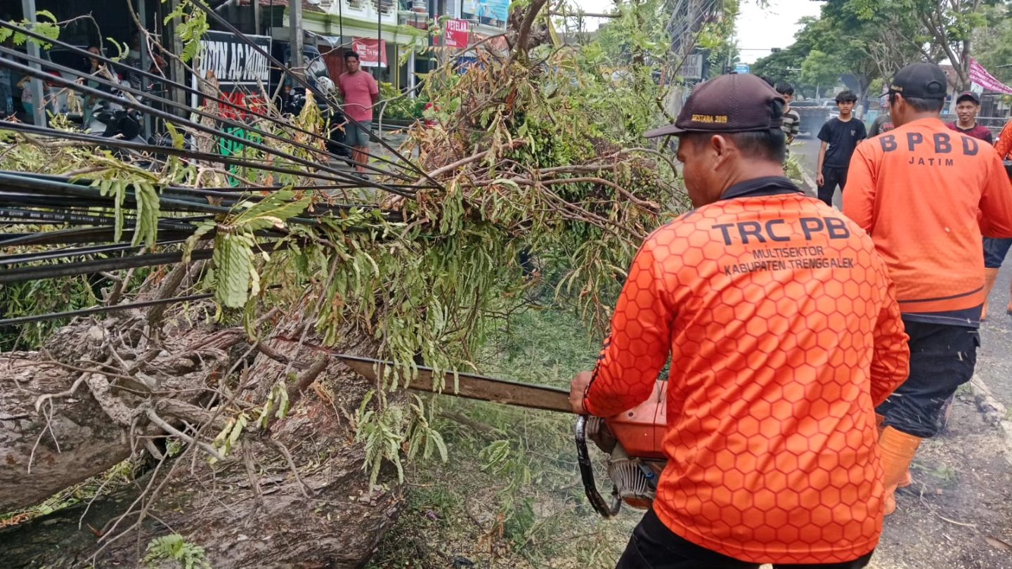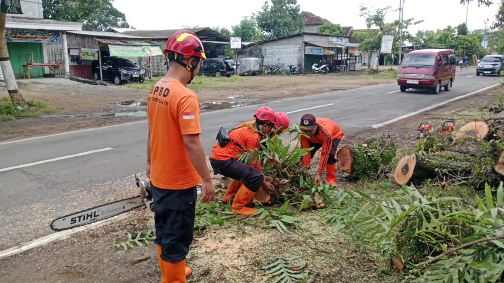 Minggu, 4 Januari 2026 BPBD Trenggalek melaksanakan penanganan pohon tumbang yang menimpa jaringan komunikasi di Jl. Raya Durenan – Bandung Desa Ngadisuko Kec. Durenan. Kegiatan berjalan lancar