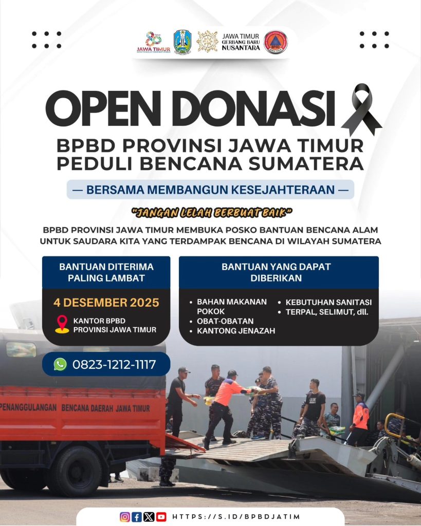 Bersama BPBD Provinsi Jawa Timur, kami mengajak seluruh masyarakat untuk bersama-sama meringankan beban para penyintas.