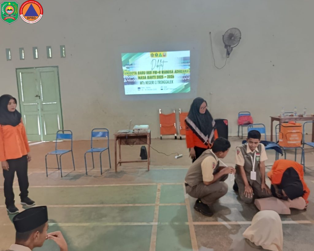 Rabu, 29 Oktober 2025 BPBD Kabupaten Trenggalek memberikan materi tentang Mitigasi Bencana serta praktik PPGD (Pertolongan Pertama Gawat Darurat) dalam rangka kegiatan Diklat anggota baru KKR/PIK-R.