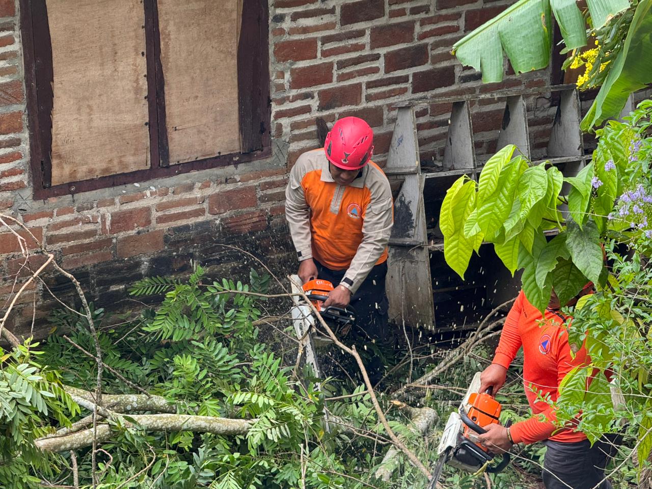 Sabtu, 20 Desember 2025 Telah terjadi pohon tumbang yang menimpa rumah warga bapak Juwarni di RT. 06 RW. 02 Kel. Tamanan Kec. Trengggalek. Minggu, 21 Desember 2025 bersama tiga pilar dan masyarakat melaksanakan penanganan pembersihan pemotongan pohon juwar yang tumbang tersebut.