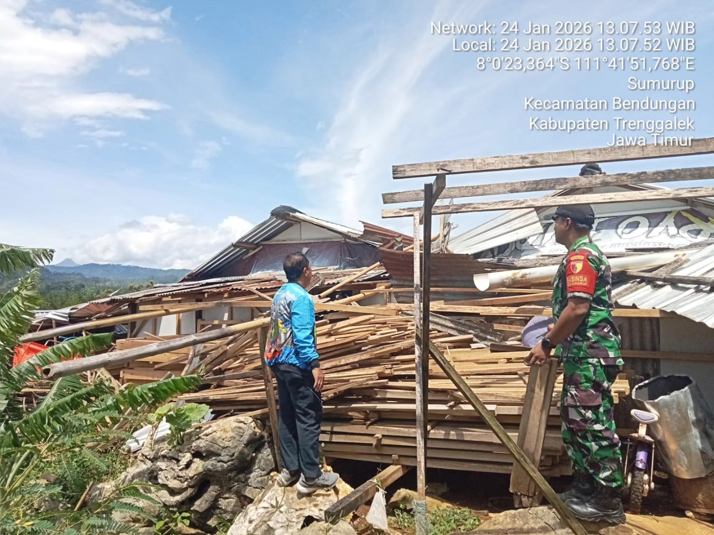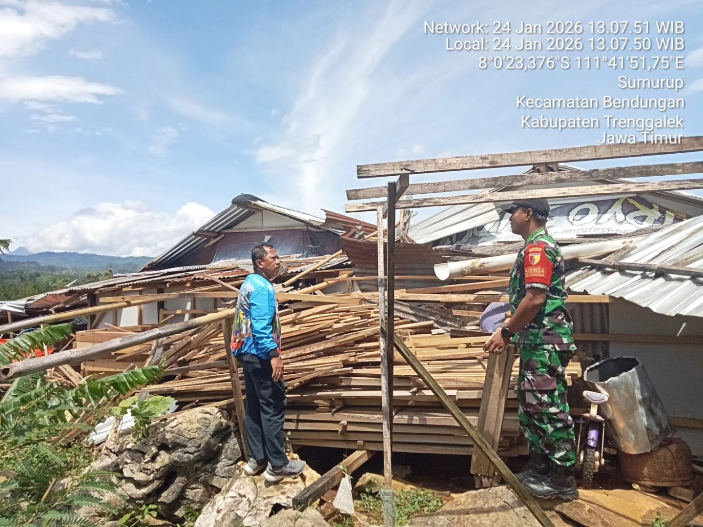 Sabtu, 24 Januari 2026 terjadi angin kencang di Kec. Bendungan, akibat angin kencang tersebut di Huntara Dsn. Winong Ds. Sumurup atap rumah 40 rumah warga rusak.