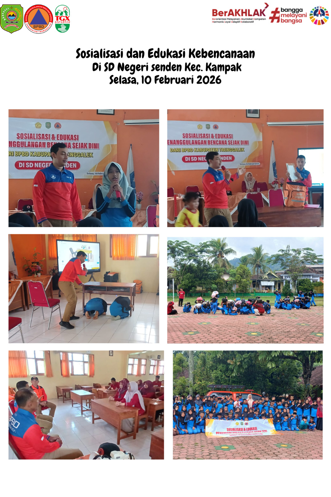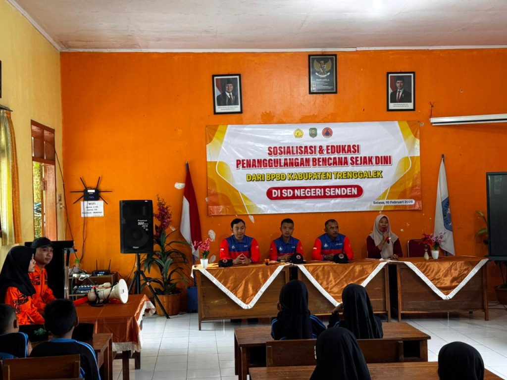 Pada hari Selasa, 10 Februari 2026, BPBD Kabupaten Trenggalek melaksanakan kegiatan Sosialisasi dan Edukasi Penanggulangan Bencana Sejak Dini di SDN Senden, Kecamatan Kampak.