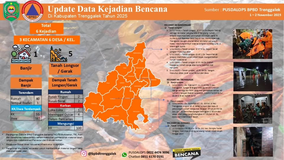 Update Data Kejadian Bencana Banjir dan Tanah Longsor di Kab.Trenggalek Tgl 1 – 2 November 2025